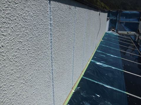 ALC材はセメントでできています。セメントはそのままですと雨水が浸透してしまいますので、ALCパネルで組んだ外壁には例外なく塗装が施されています。新築での塗装は吹き付け塗装が主ですが、昨今の塗り替え塗装は手塗りが主流になってます。吹き付け塗装と手塗りの違いですが、吹き付けは塗装作業が早く、塗り斑が出にくい。リシン吹き付け・スタッコ吹き付けなどの衣装性のある塗装が可能。デメリットは希釈しないと吹きつかない、空中に塗料の霧が飛散するなど。新築の作業工程では、外壁が組みあがったら吹き付けて仕上がってから樋などを取り付ける。カーポートや物置などは家が出来上がってから設置となるので新築の吹き付け塗装は塗料が飛散しても被害がでにくいです。