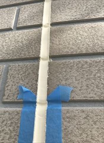 窓回り、および板間目地のシーリングを撤去し、マスキングしてシールします。シーリング材にオート化学工業のオートンイクシードを使用しました。