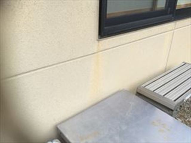 窓から出ている黄色いラインはエフロレッセンスと言い、水が流れてコンクリートのカルシウム成分が流れだし、石灰化したものです。水が流れた証拠になる現象です。