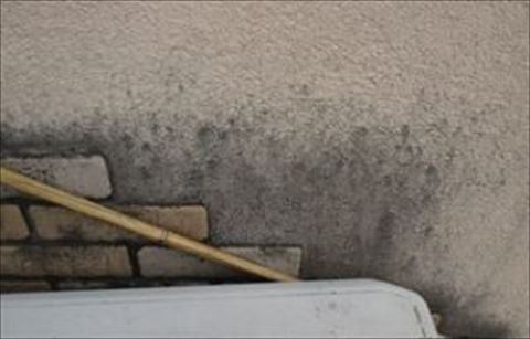 こちらも北側、左の写真はレンガタイルが貼ってある周辺のカビです。水はけが悪くいつまでも濡れているのでこうしたカビが生えてしまうのだろうと思います。