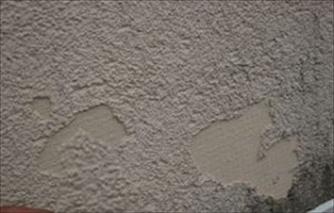 塗り壁材が剥がれているところもありました。手で簡単に剥がれてしまいこういったところから水が回って被害が出るのだと思われます。こうなってしまうと元の外観に戻すには左官仕事をしなければならず、完全に元通りになるのは難しくなってしまいます。修復後は残ってしまいます。