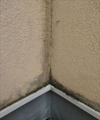 外壁は北側中心にカビが発生しています。雨が降ると乾きが悪いせいかいつまでも濡れているそうです。そのためにカビが発生していると思われます。