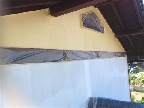 上が中塗り後、下が中塗り前の下塗りの状態です。この後全面を中塗りして最後の上塗りの工程になります。