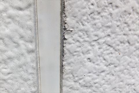 諏訪郡下諏訪町で外壁が傷んできたので見てほしいというご依頼があり現地調査に行ってきました。築25年ほどの窯業系サイディングの外壁です。このブログでも再三出てきている窯業系サイディングですが、がいへきの70%~80%は窯業系サイディングだといわれていますので、その登場頻度にも納得の数字です。セメントと繊維質を板状に整形したものが窯業系サイディングです。それ自体に防水性はないので塗装やシーリングで防水性を出しています。つまり塗膜やシーリングの劣化が外壁の防水性低下につながります。