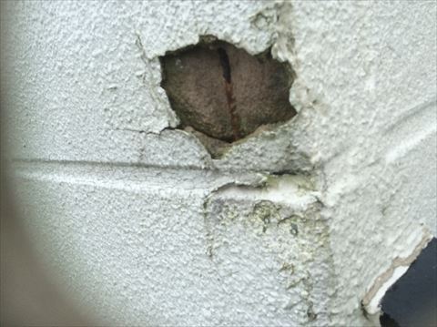 また、クラックもいくつも入っていました。これも経年でのものと考えられます。補修して塗装します。