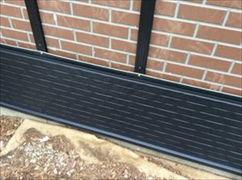 茅野市金沢で金属サイディングのカバー工事を行っています。着工から5日ほどかけて下地工事を行い、いよいよ本体の取り付け工事となりました。今回使うサイディングはケーミュー株式会社の金属サイディング【はる一番】、優波柄のマットブラックです。当然ながら一番気を遣う作業です。今回は横張りのため4mの長さの本体を下から張り上げていきます。途中窓や配管などの障害物があるとそこを切り欠いたり、穴をあけて処理します。こういった加工を必要とする手のかかるところを先に施工します。