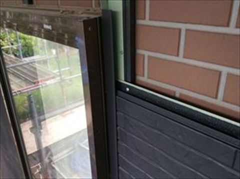 窓周りはコの字の見切縁を回し、サイディング本体を挟み込んで取り付けます。