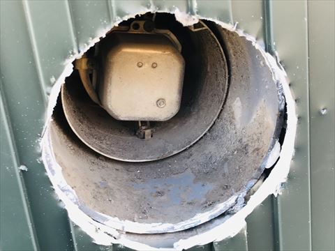 換気扇の内側の写真ですが、なかなか見ることはないですよね。外壁などの改修工事でもしない限りこのような状況は見ることがでいないです。