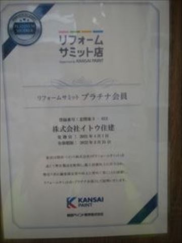 安曇野市で、2階建住宅の外壁塗装をさせて頂きました。1階はクリヤー、2階は有色の塗料で、どちらも最も耐候性の高い塗料を使用しました。先ずは2階に使用した塗料から紹介させていただきます。イトウ住建は、関西ペイントが認定した優良な塗装会社「リフォームサミット店」に認定されていて、中でも特別な『プラチナ会員』に認定されています。定期的な研修と勉強会を受け、より良い製品と塗装技術の向上に日々努めています。