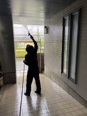 塩尻市で、ミサワホームの外壁塗装をさせていただきました。2度目の塗装という事でしたが、傷みも殆どなくまだお綺麗でした。お聞きしてみると、綺麗なままで長持ちをさせたいというお考えをお持ちで、前回はメーカーでの施工だったそうですが、もっと良い施工をしてもらえる会社を探しておられたそうです。イトウ住建は、元エプソンの社員が立ち上げた会社で、セイコーエプソン生協提携店ということもあり、細かいところまで手が届き、こだわった仕事をするところを気に入っていただいたそうです。上の写真は、専用の洗浄機を使った高圧洗浄で、隅々まで汚れを落としていきます。