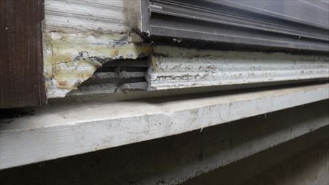 安曇野市外壁現地調査|窓からの結露水が原因で爆裂が起きた窯業系サイディング
