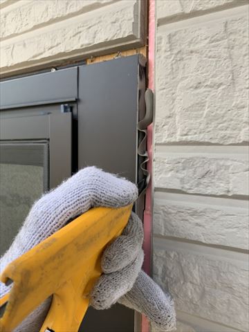 サッシ廻りにもコーキングが残っていません。これでシール職人の下地処理は完了になります。次のコーキング施工は、塗装が仕上がってからの施工となります。ダイワハウスさんのコーキングは幅が広いので、コーキングに塗膜を被せてしまいますと塗膜が割れてしまいます。割れてしまったからといってコーキングが割れる訳ではないので、躯体に悪影響を及ぼすことはございませんが、サイディング板間目地幅が広い分塗膜の割れも目立ってしまい美観が損なわれてしまいますので、コーキングは塗装の後打ち施工となります。