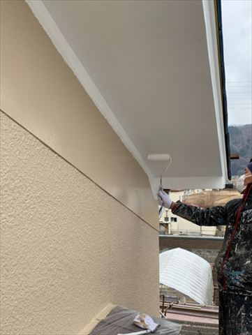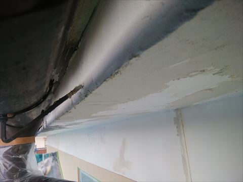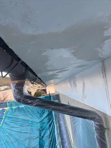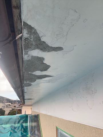 塩尻市|崩れたモルタル製軒天をリペアしてアレスシックイを塗装