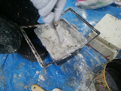 ALC補修セメントに水を混ぜて練ります。