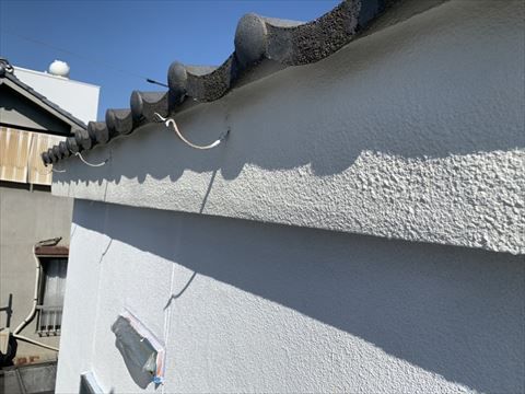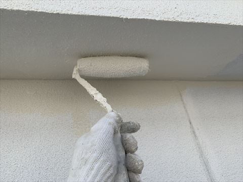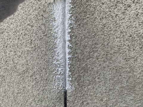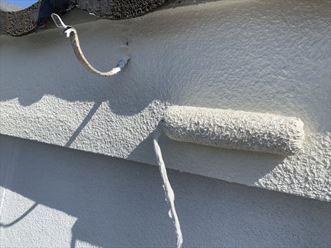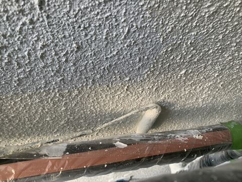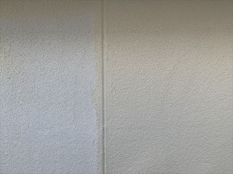 モルタル外壁にはヒビがつきものです。そのためモルタル外壁には『ヒビよせ』というラインが入っております。こういう隙間にもしっかり塗料が入るようにヒビよせには刷毛で塗装を致します。