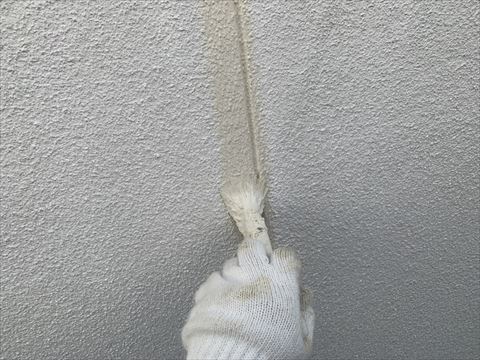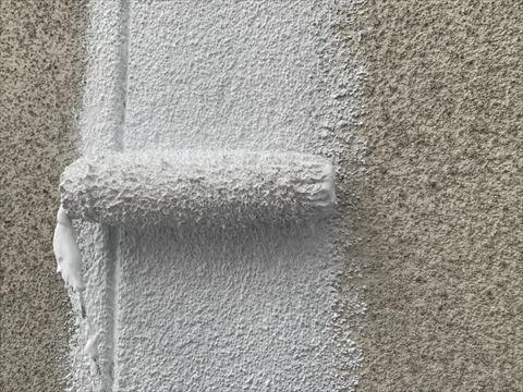 今回使用しました下塗り剤は合成樹脂エマルション系複層仕上げ材の関西ペイント弾性ホルダーです。この弾性ホルダーの特徴はシーラーを下塗りしなくても密着性が優れており、特殊エポキシ樹脂とアクリルゴムを主成分としているために、防水性が高くクラックの隙間に入り込み防カビ防藻に優れた高機能弾性フィラーです。
