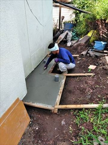 諏訪市大和でエコキュート設置のための土間コンクリート打ちを行いました。