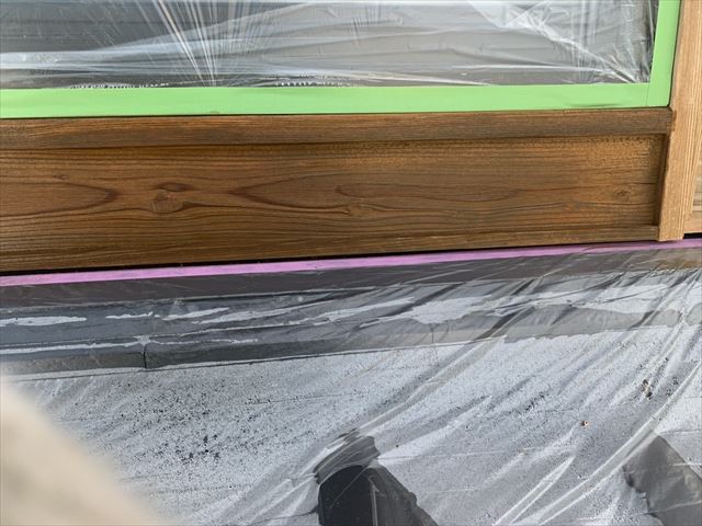これで窓下落ちこの中塗りが完了です。落ちことは凸凹で言う凹の事でへこんだ部分の事です。木部の塗装の場合は基本的にはへこんだ部分から塗装していきます