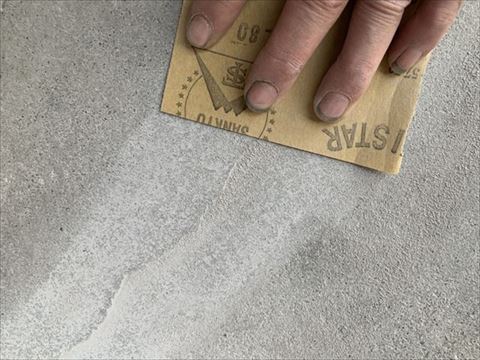 スクレーパーで余分な補修材を取り除いたら、次はサンドペーパーで研磨して、スクレーパーで取り除けなかった部分をさらに取り除きます。