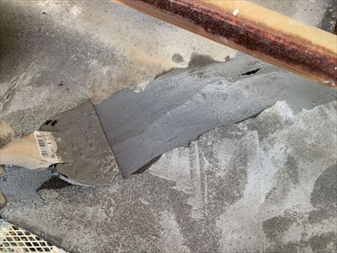 スクレーパーで余分な補修材を取り除いた様子です。