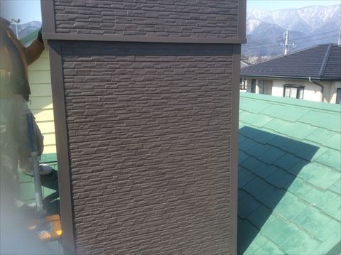 松本市補修工事|レンガが剥がれた煙突に金属サイディングを重ね張り