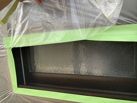 窓や玄関ドア、メータ類、給湯器など塗装しないところをマスカーというビニールにガムテープがついた道具などを使って覆います。塗料が落ちて汚れないように地面にブルーシートやメッシュシートを敷きます。これらを養生をするといいます。職人が安心して作業できるように時間をかけて行う作業です。養生第一という職人もいるくらいです。