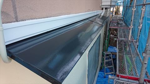 窓の上の小さな屋根を霧除け(ひさし)といいます。こちらも板金の場合が多いので金属屋根用の塗料を使います。