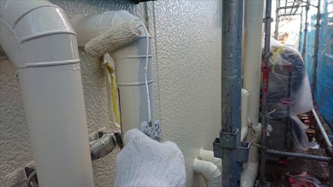 排水管や、エアコンの配管カバー、換気扇のウェザーカバー、換気ガラリ、ベランダ手すりなど細かいところも塗装します。