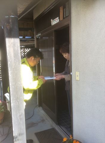 工事のご契約をいただき、工事日程が決まったら、まず最初にご近所へのあいさつ回りを行います。外壁塗装は着工から完工まで数週間かかります。長い間工事をするので工事車両の出入りや工事の音など、少なからずご近所にはご迷惑をおかけします。そのお詫びとご了承を兼ねてちょっとした粗品とともにご近所を1軒1軒伺います。