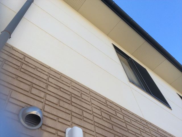 塩尻市堀ノ内のお客様が外壁塗装のご相談でご来店くださいました。ご近所だったのでその場ですぐに点検、下見、調査に伺いました。1回、2階が同系色で塗り分けられたALCの外壁です。第一印象はところどころ白くALCの素地が見えているところはありますが、きれいな外壁だったのですが・・・