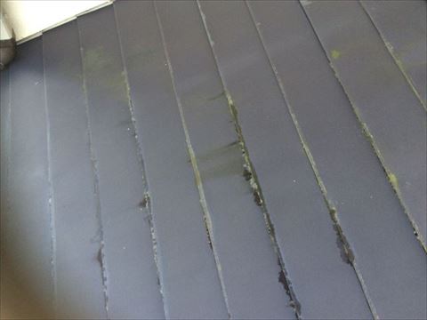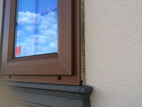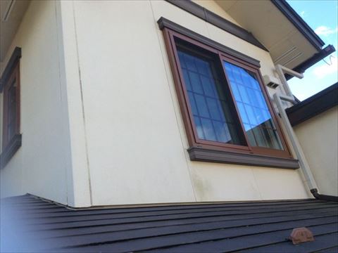 窓下の汚れが気になりました。近くまで行けなかったので遠目での判断ですが、エフロという結露水などが流れて外壁の中のカルシウム成分が溶け出して酸化したものならばさほど心配ないのですが、カビのようにも見えます。北側なのでどちらとも判断がつきません。足場を立てたときにしっかり見て対応したいと思います