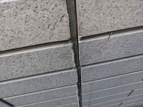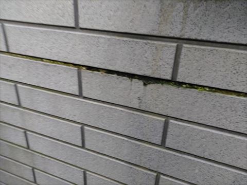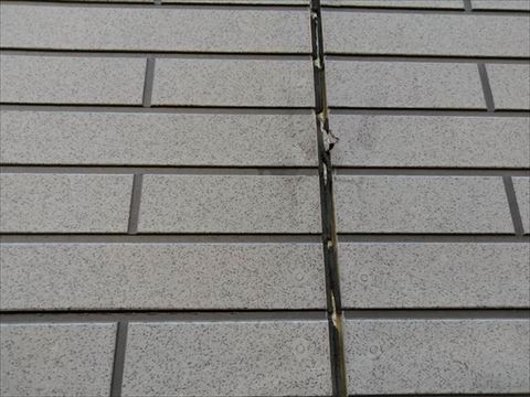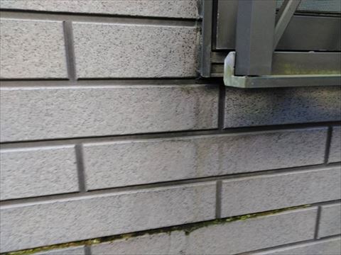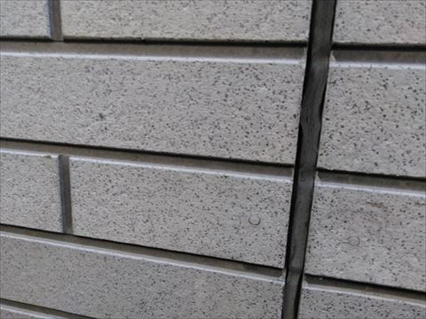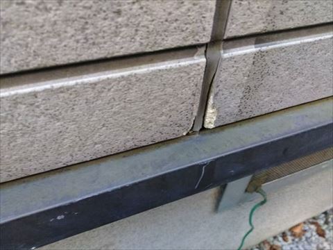 次に目についたのがサイディングボード間のシーリングの劣化です。窯業系サイディングは板状のボードをつなぎ合わせていく外壁材です。つなぎ目の目地にはほとんどの場合シーリング(コーキング)というゴム状のものが打たれています。ボード間から雨水が入り込まないようにするためのものです。このシーリング材が太陽の紫外線によるひび割れや痩せなどの劣化、サイディングボードが動くことで伸縮させられて破断や剥がれなどが起きてしまいます。この家のシーリングもほとんどがこのどれかの不具合を起こしていました。