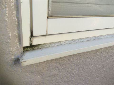 他の窓もサッシの下場のシーリングが同じように劣化していました。いつ水風船状態になってもおかしくないので今回すべての窓のシーリング打ち替えをご提案しました。幸いシーリングがあらわしになっているのはサッシ下場だけなので、比較的少額で済むと思います。