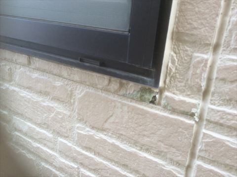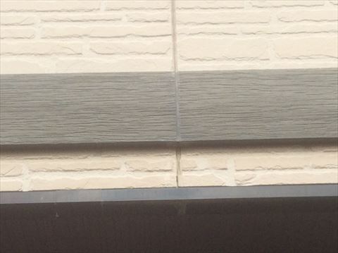 まずサイディングボードの性能を調べました。ありがたいことにお家の図面を保管なさっていたのでそれをお借りしてサイディングボードの使用を確認しました。一番確認したかったのはボードの厚さです。厚さ12mmを基準にそれより厚いか薄いか、12mm以上ないとボードが寒暖差の影響で反ってしまうことがあります。逆にそれ以上あれば反りの心配が減ります。このお宅のサイディングボードの厚さは15mmありました。目視検査からも反りは見られませんでしたので一安心です。次に写真にある通気層の確認です。写真は基礎と外壁の間の土台水切りという部材の下側を地面に寝そべって取ったものです。この名が通気口で、サイディングボードの裏側に通気層があることを意味しています。厚みもあり通気も取れているので、サイディングボード自体は問題ありません。