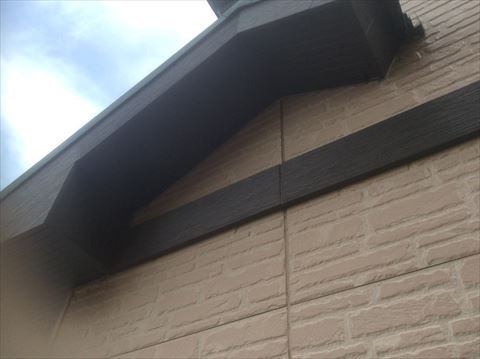 このようなデザインの外壁です。この外観を維持しつつメンテナンスをするには、通常の塗料では塗りつぶしてしまうのでできません。そこで透明なクリア塗料を使うことをご提案しました。耐久性も通常弊社が使っているシリコン樹脂塗料と同等かそれ以上あり、お客様のご要望にもピッタリかと思います。