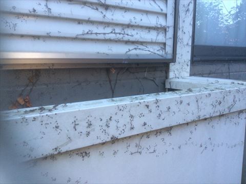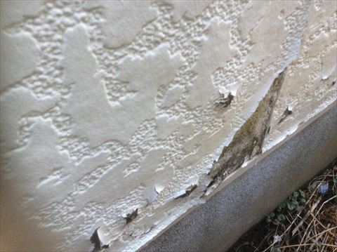 駐車場に車を止めてすぐに目についたのは、外壁にこびりついている植物でした。植物にはあまり詳しくないのでなんという植物かはわかりませんが、細いツルと種のようなものが、もう枯れてはいるのですがびっしりと付いています。指で擦ってみましたが簡単には取れそうにありません。以前同様に植物のツルがこびりついていたのをバーナーで炙って取ったことを思い出しました。その時はだいぶ塗膜も傷んでしまったのですが、塗り替えれば大丈夫だったので今回もその方法を取ろうと思います。