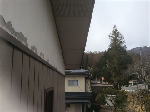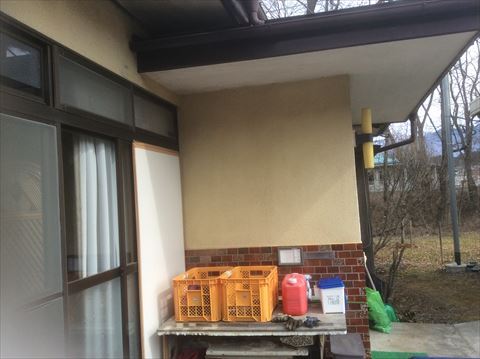 諏訪郡富士見町、山梨県との県境で八ヶ岳山麓のすそ野に位置する地域です。町内には富士見パノラマスキー場があり、今回お邪魔したお宅もそのスキー場にほど近いところでした。その富士見町で外壁塗装のお問い合わせがあり現地調査に行ってきました。例年塗装のお問い合わせは3月半ばすぎないといただかないですが、今年は暖冬のせいか、塗装のお問い合わせがいつもの年よりも早い気がします。お家のほうは7年ほど前に居ぬきで購入されたとのことで、正確な築年数や過去の修復歴などははっきりしませんでしたが、色あせなど全体的に古い感じには見えました。外壁は南面がモルタル、東西北面が金属サイディング、外壁上部に漆喰の部分がありました。