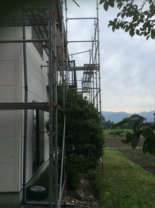 架設足場の様子です。この後メッシュシートをかけます。安全かつ効率的に作業するのに不可欠なものです。20万円前後かかってしまいますがご了承ください。