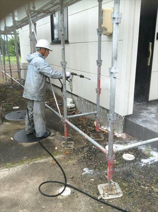 安曇野市|塗装前の洗浄作業|洗剤を混ぜて抗菌高圧洗浄|2度洗いします