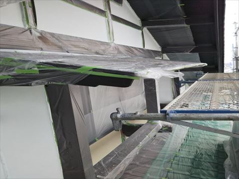 マスチック塗装の塗り上げ工程ですが、下塗りはフィラー等の下塗り剤を塗装します。中塗りをマスチック塗装にして仕上げを平塗り(通常塗装)する工程と、中塗りを平塗りして仕上げをマスチック塗装にする工程があります。しかし今回は中塗り、仕上げ塗りの両方ともマスチック塗装致します。一度塗りでかなりの厚塗りができる塗装をなんと二度も塗装致しますので、断熱効果や防水効果など躯体を守る効果は絶大ですね。塗料自体が空気を含んでいるので重量もさほどではありません。