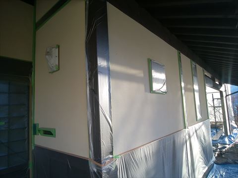 今回使用いたしました塗料は関西ペイントの湿式外断熱躯体保護防水仕上げ材『ドリームコート』です。外断熱機能や透湿性がありますので壁内結露をおさえて躯体の保護が期待できます。透湿性に対して防水性にも優れています。また高い弾性保持率がありますので外壁下地にクラックが発生しても表面に出てきません。