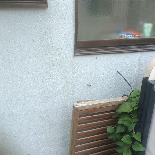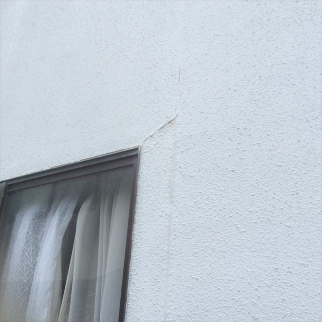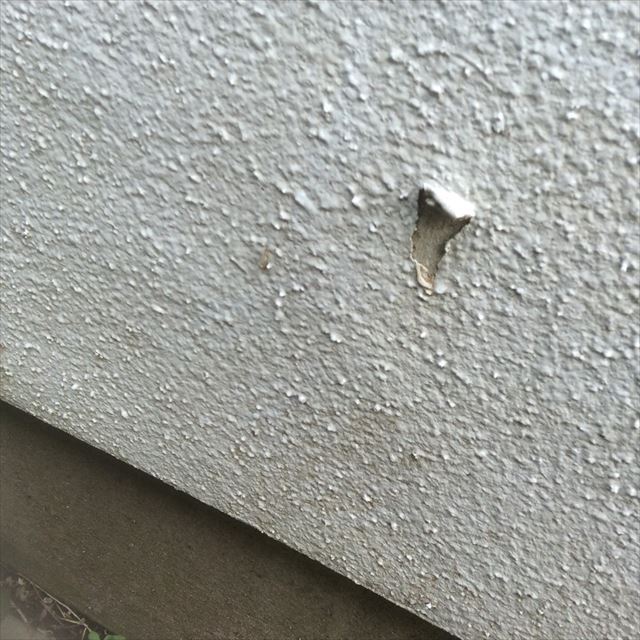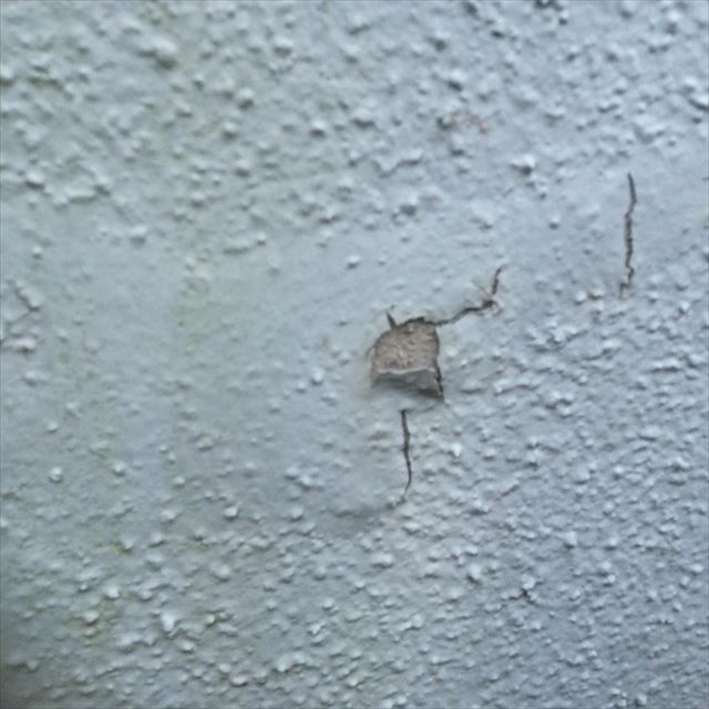 劣化症状の中で見つけると一番心配になるのがこのクラックではないでしょうか?もしかしたらこれが原因でうちが崩れてしまうかもしれないと思うこともあるでしょう。この写真程度のクラックでは家が崩れることはまずありません。これは軽微な揺れや外壁時の伸び縮みから起こるものです。ただ、ここから水が入るようになると少々厄介です。塗り替える際に我々はこのクラックにシーリングを打つか、下塗り材で埋めるなどの防水処理をします。