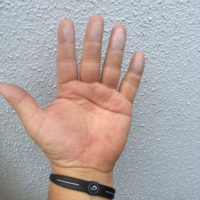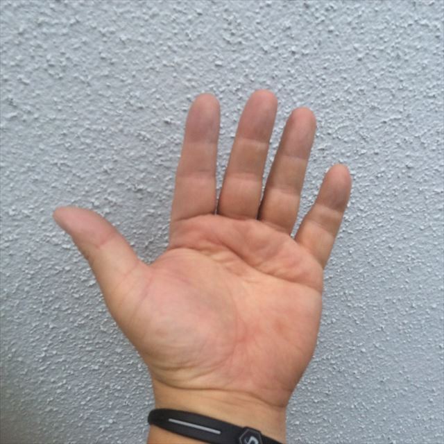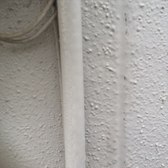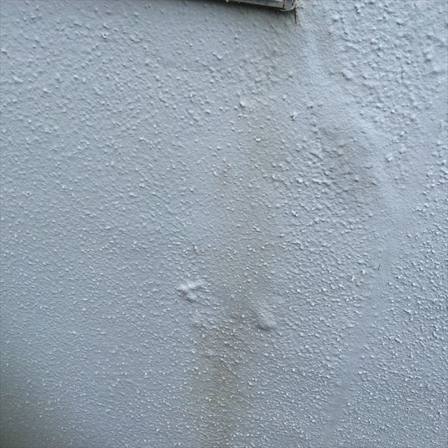 左の写真が壁に触る前、右が触った後で、右の写真の指先が白くなっているかと思います。これがチョーキングです。チョーキングとは、塗料の色の成分である顔料が表面に浮き出て、手で触ると外壁の色に近い粉状の汚れが付いてくる現象です。見ただけではなかなか判断しにくいのですが、触ってみたり、何かが触った後色が少し変わっていたりするとわかります。塗替えのタイミングの初期段階です。