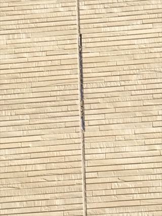 1本の目地で上の数10センチは右側、下は左側がはがれています。おそらく左右剥がれが切り替わっているところがサイディングの上限ジョイント部分だと思います。上のサイディング板と下のサイディング板で伸縮の方向が違ったのではないかと思います。