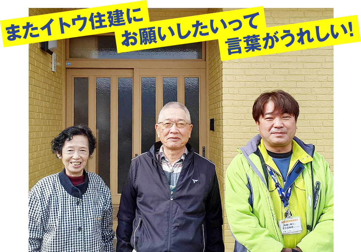 工事が終わってからも、ずっと安心。それが地元密着のイトウ住建のいちばんの強みです。