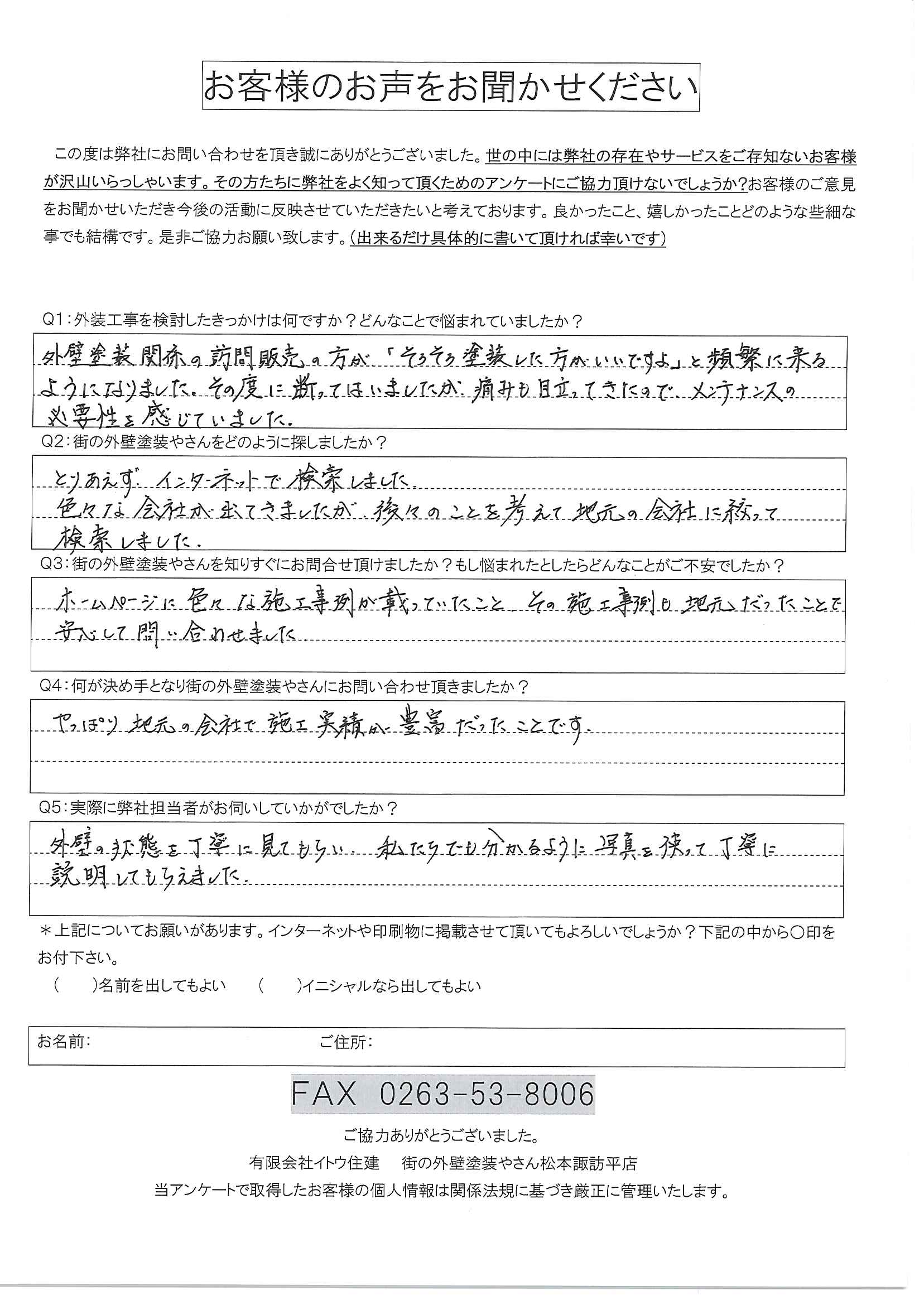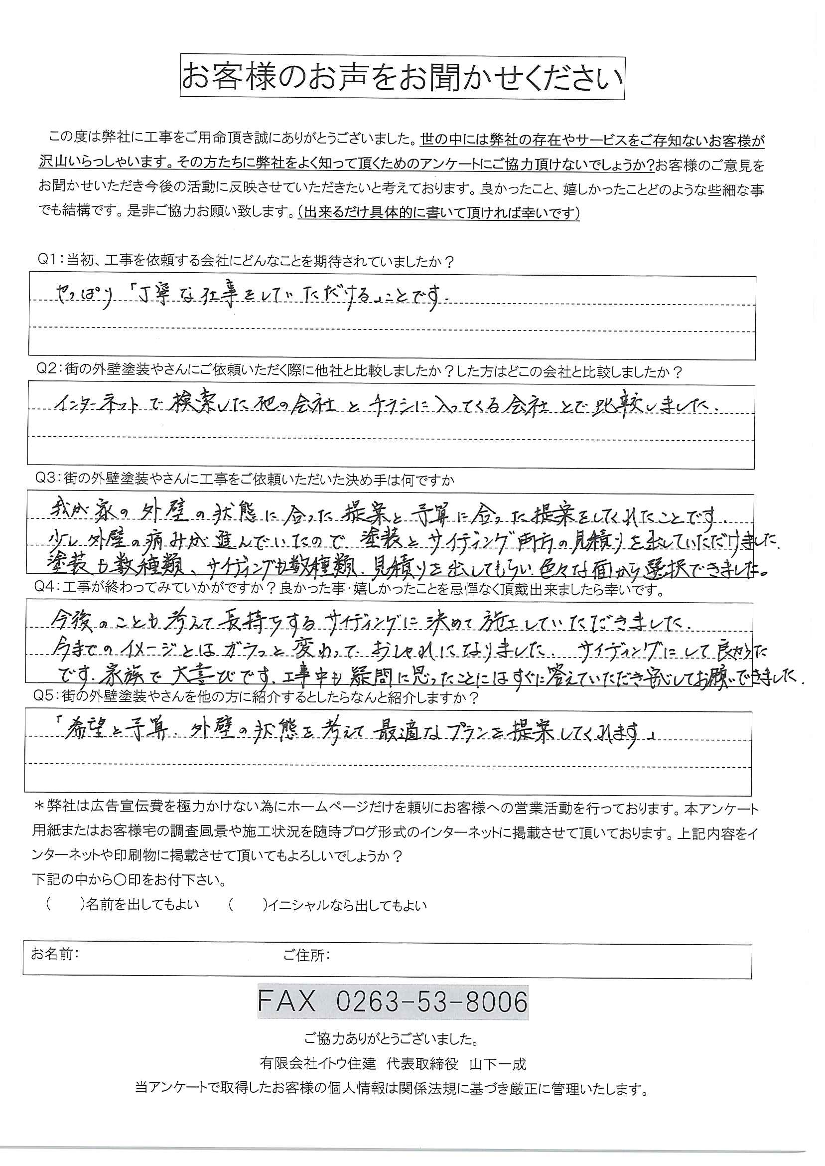 ホームページに色々な施工事例がのっていたこと、その施工時れも地元だったことで安心して問い合わせました。