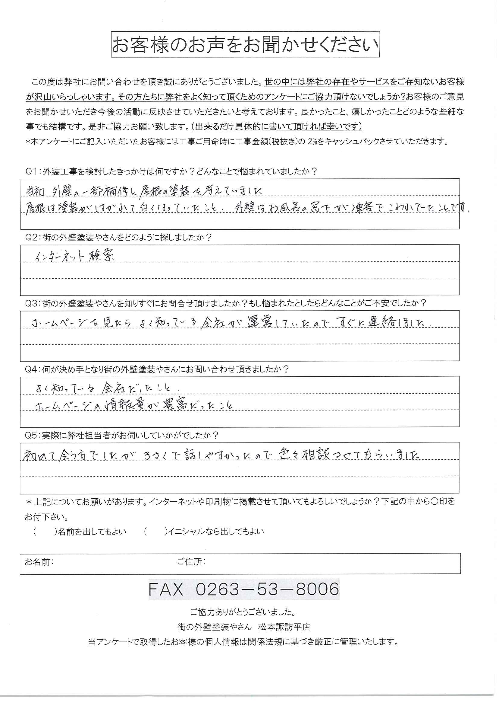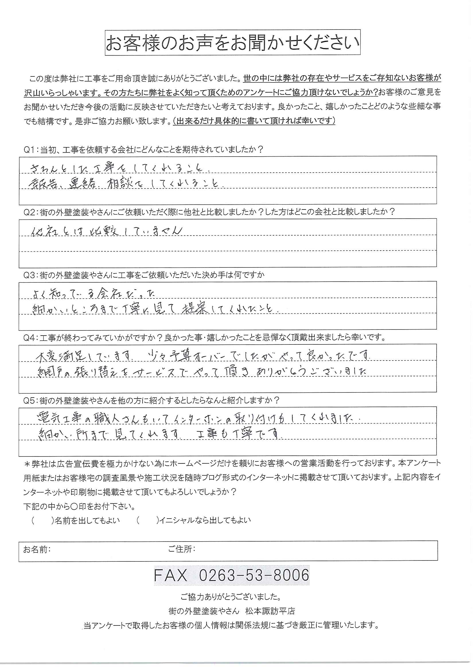塩尻市金属サイディングカバー工事|嬉しいご感想をいただきました