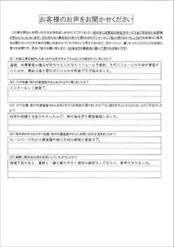 築20年が過ぎて屋根、外壁の傷みが気になっていたため、今後のリフォーム計画も含め、最も適した施工方法でリフォーム工事をお願いしたかった。