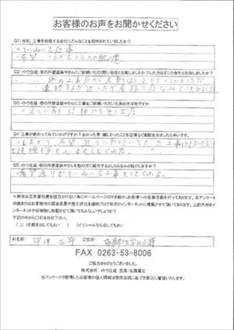 塩尻市屋根・外壁塗装をさせて頂いたお客様からご感想をいただきました