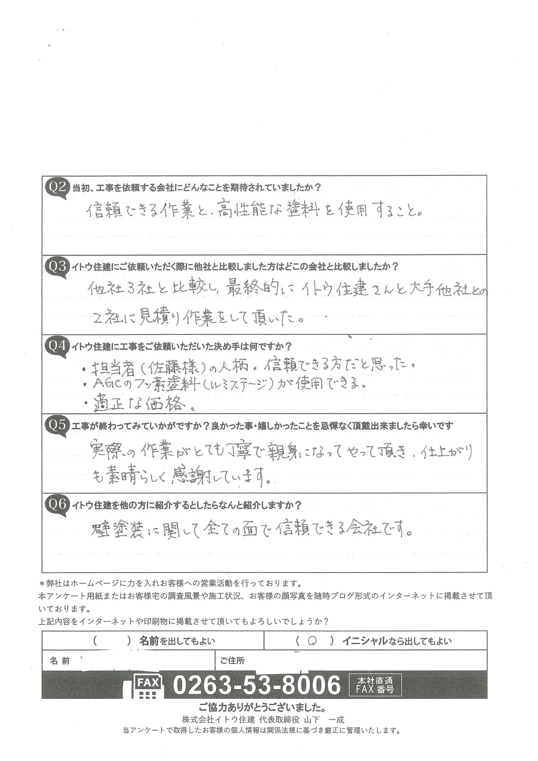 岡谷市|フッ素樹脂外壁塗装のお客様からご感想を頂きました